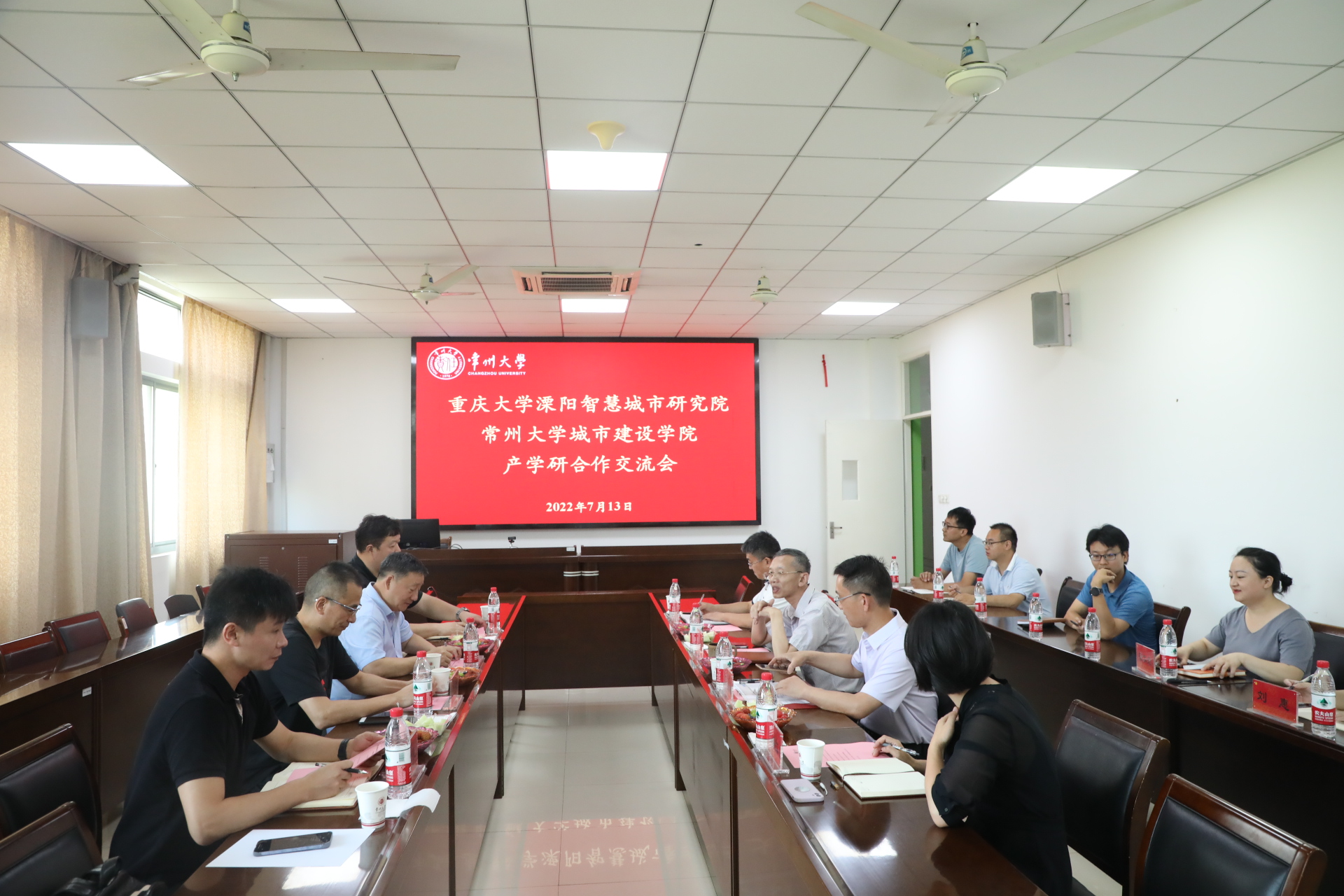 2022年7月13日上午,重庆大学溧阳智慧城市研究院&足球90比分 - 实时足球比赛比分直播 产学研合作交流会在科教城明行楼341会议室举行。重庆大学溧阳研究院副院长雷小红、办公室主任高原、科创中心主任尚川、重庆纵横工程设计有限公司总工程师吴一峰和江苏省技术转移(常州大学)研究院副院长魏伟、足球90比分 副院长(主持工作)朱平华、副院长王新杰、陈春红副教授、足球90比分 部分教师代表出席了本次交流会。