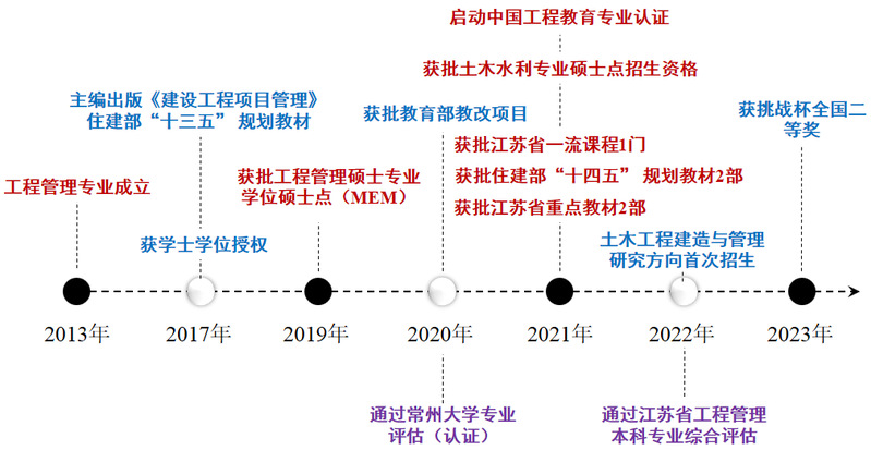 常州大学工程管理专业成立于2013年,依托学校国家一流本科专业建设点、国家工程教育认证专业土木工程及管理科学与工程一级学科硕士点设立。2017年获批学士学位授权、2019年获批工程管理硕士专业学位硕士点,迄今已有连续6届约200名本科毕业生。本专业共有施工及智慧建造管理及城市运维管理2个方向。