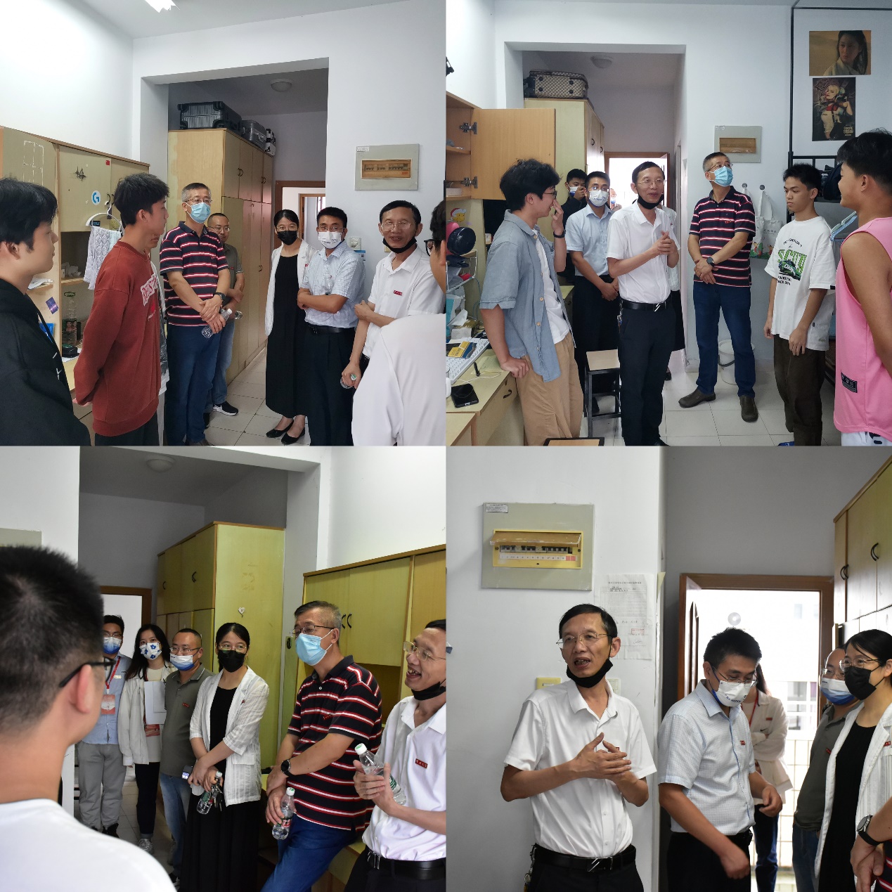 15日下午14:00,足球90比分 领导一行人首先来到了二号楼男生宿舍,在查看了基础设施、环境卫生等情况后,开始进入学生宿舍。他们细致耐心、亲切和蔼地逐一走访,将足球90比分 的问候和对新学期的期许带给每一位新生。敲开一间间宿舍门,门后是一张张惊喜而略带紧张的青涩脸颊。“同学你来自哪里呀?”“对学校第一印象怎么样?”“在学校有没有碰到什么困难或不方便的地方?”在走访中,足球90比分 领导们与新生们亲切交谈,全面细致地了解新生的基本情况,询问了大家对于当地气候条件和生活起居等方面的适应程度;对于不同省份新生的家乡特色、特产进行了热切谈论,并对来自五湖四海的室友之间的相互磨合提出了宝贵建议;他们与新生促膝而谈,鼓励大家畅所欲言,叮嘱新生注意个人防护,遵守学校疫情防控规定,谨防诈骗;在了解到一个宿舍全部同学都励志考研时,他们对宿舍的学习氛围和同学们的学术追求给予了充分肯定,并勉励大家在追求学术的同时也要注意放松身心,强身健体。