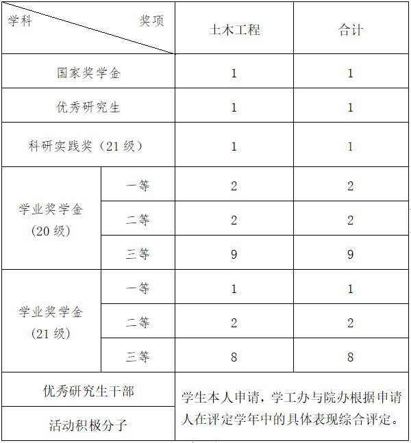 3.校级荣誉奖:优秀研究生、优秀研究生干部、活动积极分子