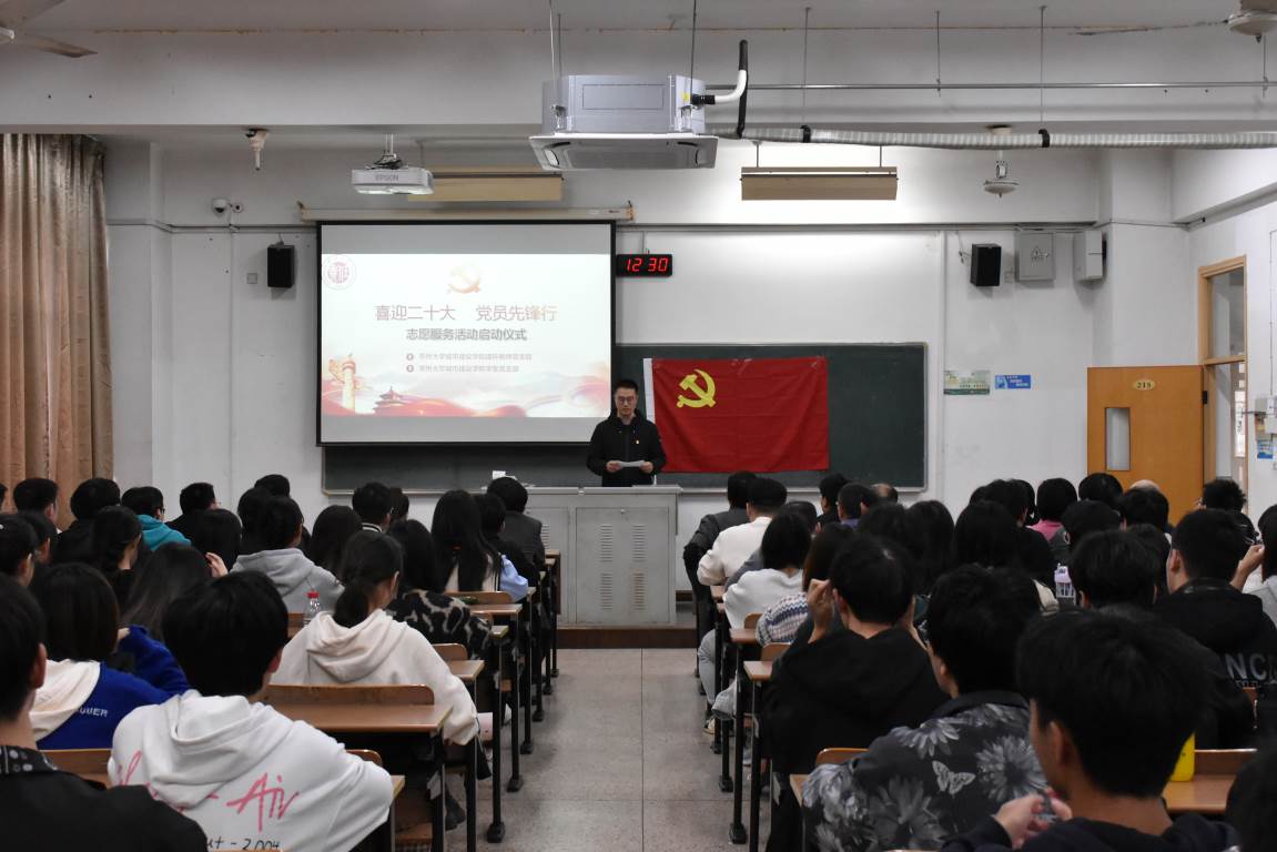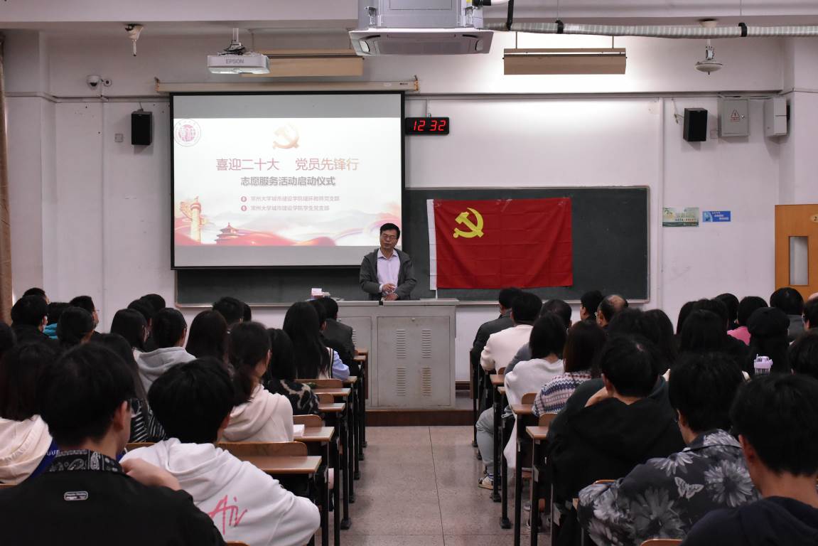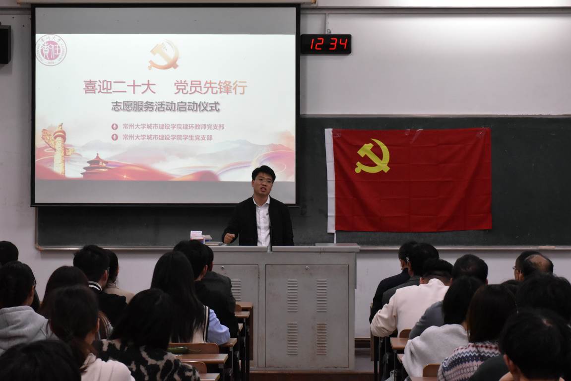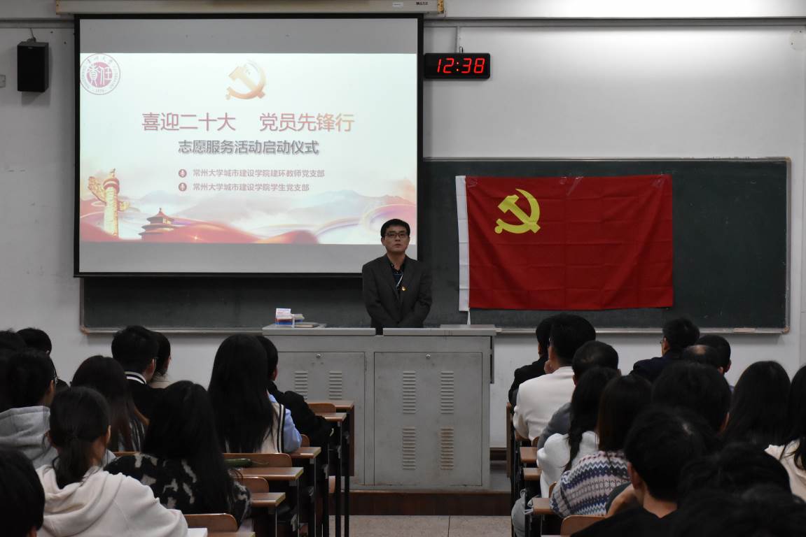 金秋迎盛会,共启新征程。为迎接党的二十大胜利召开,深入弘扬志愿服务精神,教育引导广大师生坚定初心跟党走,建功立业新时代。足球90比分 特举办以“喜迎二十大,党员先锋行”为主题的志愿活动启动仪式。活动于2022年10月21日在W1213教室举行,由院学生党支部第一支部副书记王发静主持,院党委副书记顾坚,副院长王新杰、许霞,院长助理杜尔登、陈春红、周年勇,建环专业负责人郭强,建环专业教师、教师党支部及学生党支部的全体党员出席活动。