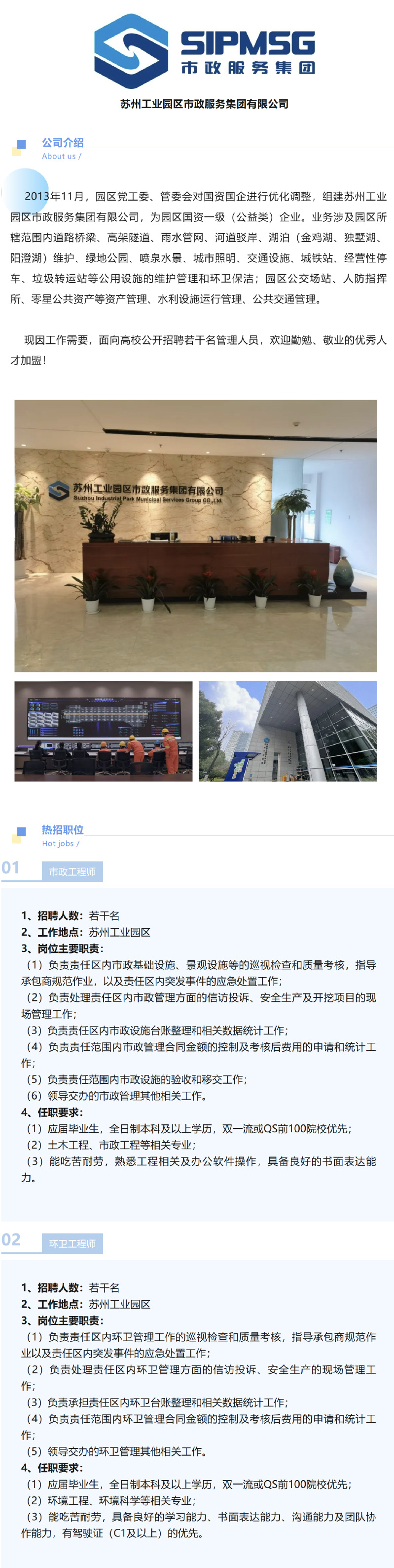 招聘[2202079] 绣美园区-苏州工业园区市政服务集团-校园招聘