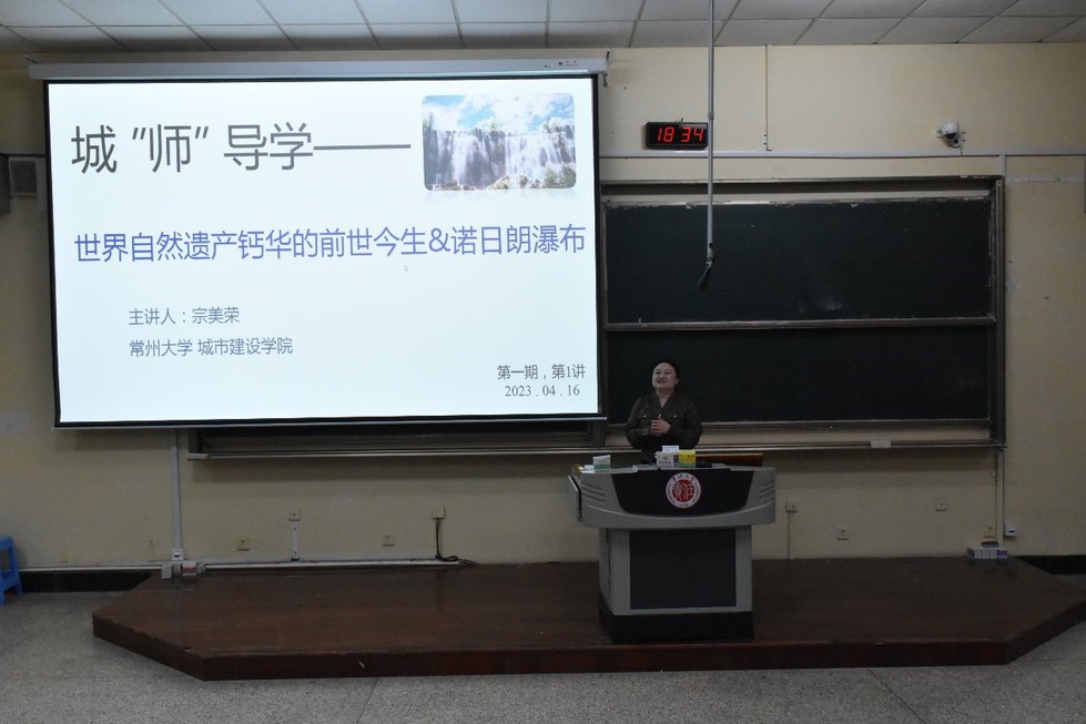 本次导学主题为“世界自然遗产钙华的前世今生&诺日朗瀑布”。讲座伊始,宗美荣生动讲述自己幸运的“一分“求学经历,并分享考研、考博乃至工作等五次人生选择,勉励同学们道:“抓住机会,知道自己想要的,坚持走下去”、“一切都是最好的安排”。接着,宗美荣从研究课题着手,深入浅出地介绍了钙华的形成、组成以及对修复自然的作用,并以参与修复震后诺日朗瀑布的经历为例,展现新技术的前瞻性与可发展性。最后,宗美荣从:“专业—理论思维能力;自修—综合能力提升;选择—明确努力方向;韧性—坚持就会成功”等四个方面阐述学习成长路上的要点。城“师”系列课程第一讲在同学们的掌声中圆满结束。