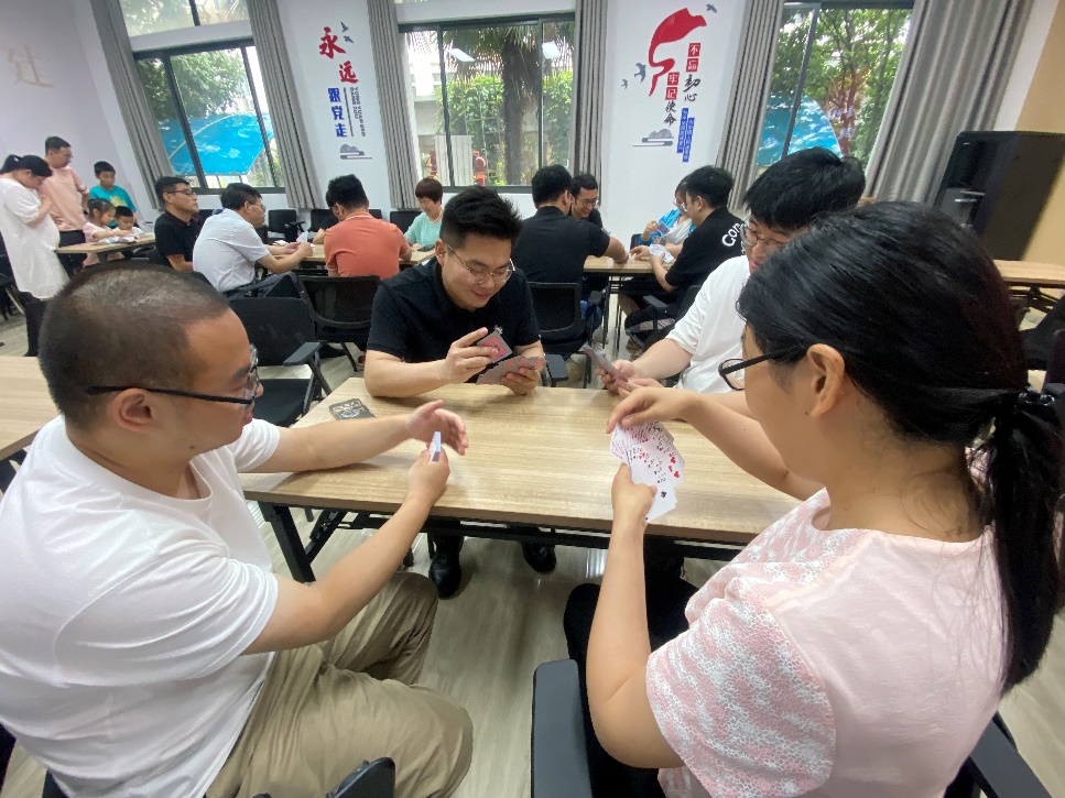 活动现场举行了掼蛋比赛,教职工自愿组队,采取一局定胜负的方式。同时还提供了瓜果甜品饮料,在炎炎夏日为大家送上一份清凉。现场氛围轻松愉快,充满了欢声笑语,充分展现了城建足球90比分 团结、奋进、和谐的良好氛围。