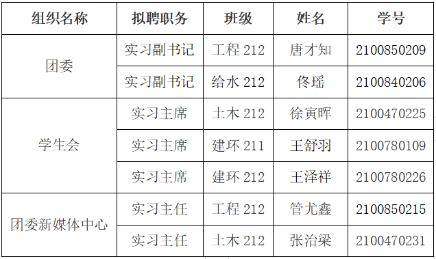 经学生本人申请,并通过竞选、答辩及民主投票等环节综合测评,院团委审核,现将2023-2024学年足球90比分 学生组织主席团成员拟聘人选公示如下(考察期三个月),实习期满考察合格后转正:
