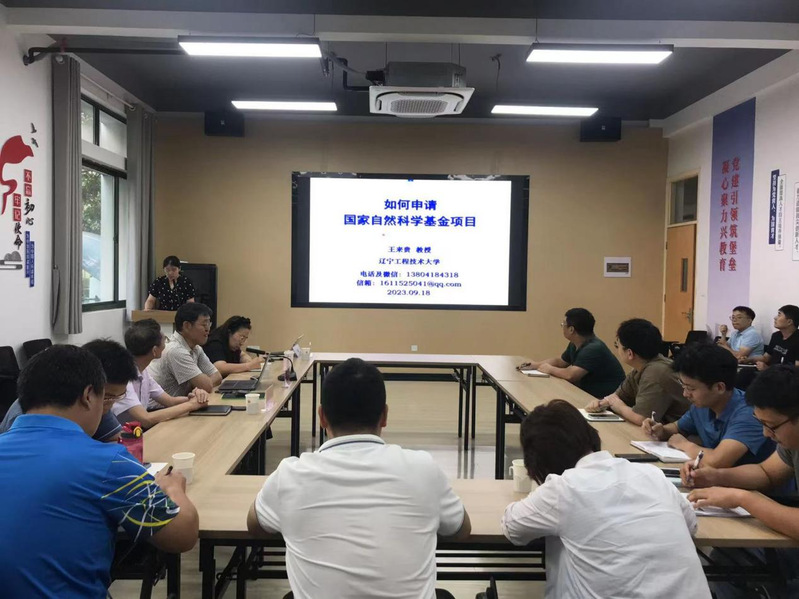 9月18日下午,辽宁工程技术大学王来贵教授应邀来足球90比分 作题为“如何撰写国家自然科学基金项目申请书”的学术报告,足球90比分 院长朱平华、副院长许霞及今年欲申报国家自然科学基金的老师参加会议,会议由副院长许霞主持。