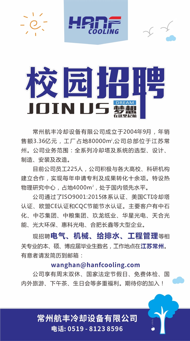 招聘[2024050]常州航丰冷却设备有限公司校园招聘