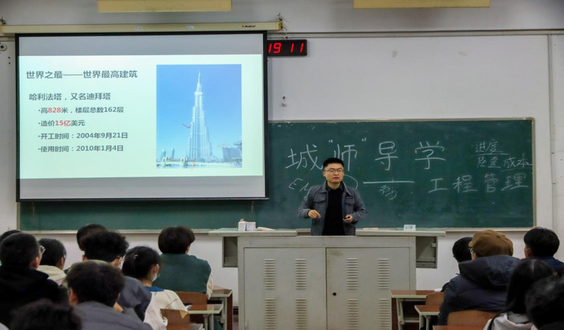 为激发学生学习兴趣和加强学生专业的认同感,11月22日晚,足球90比分 在W1618开展了城“师”导航系列讲座第二期第一讲。本次讲座由辅导员邵丹迪主持,工程管理专业教师傅宏伟主讲,2023级工程管理专业全体新生到场参会。