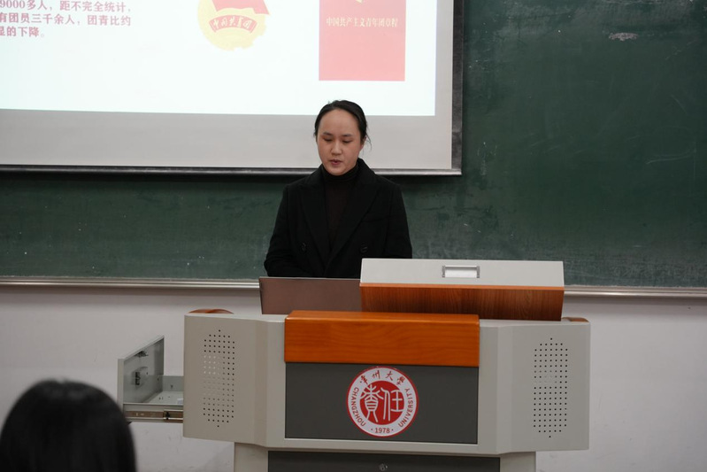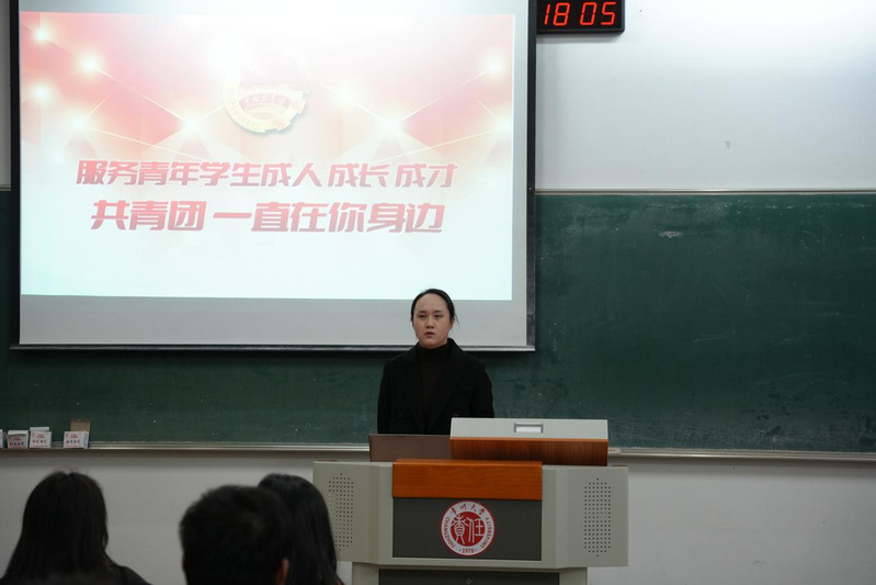 会议伊始,宗佳瑛向学员们介绍了共青团的性质,详细讲解了团旗、团徽、团歌的使用规范。在学员们对共青团有了基本认识后,宗佳瑛向学员们介绍了学校团委的部门构成和职能。最后,宗佳瑛分析了我校团推优入党文件和流程,指出填写材料的注意事项与要点。