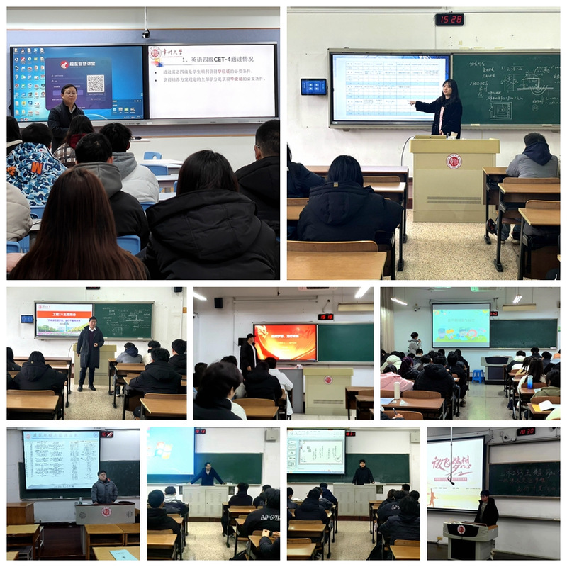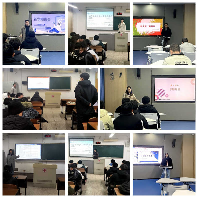 班会从学习和生活等多方面入手,紧密围绕消防安全、学风建设、职业规划、班级宿舍管理等方面展开。班主任们对班级上一学期的学习状态和学习氛围进行总结,同时指出部分学生的不足之处与改进方向,引导学生摆正学习态度,制定有效的学习计划,重视英语四六级能力提升,积极参加社会实践和学科竞赛,培养综合能力。辅导员们以详细的数字来呈现班级的学习状态,对挂科人数、重点科目、专业和班级排名、学分等方面对期末考试成绩进行说明,引导学生认识到与同年级各专业间、同年级各班级间的差距,意识到良好的班风学风与个人成长相辅相成。