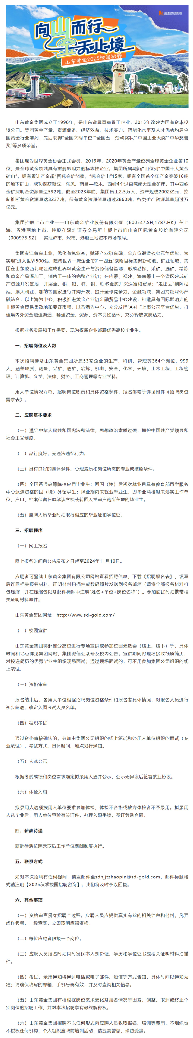 招聘[2024101]山东黄金集团2025秋季校园招聘公告
