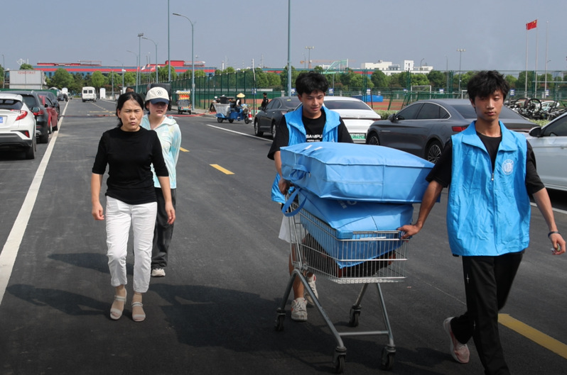 服务贴心。新生们一进校门,就能感受到志愿者们扑面而来的热情。志愿者们身穿蓝色马甲,他们不惧酷暑,帮助新生搬运沉重的行李,耐心地指导新生完成报到流程,确保每一位新生都能顺利地开始他们的大学生活。志愿者们的细心和热情不仅让新生们感受到了家的温暖,也让随行的家长们对孩子们即将开始的新生活充满了信心。