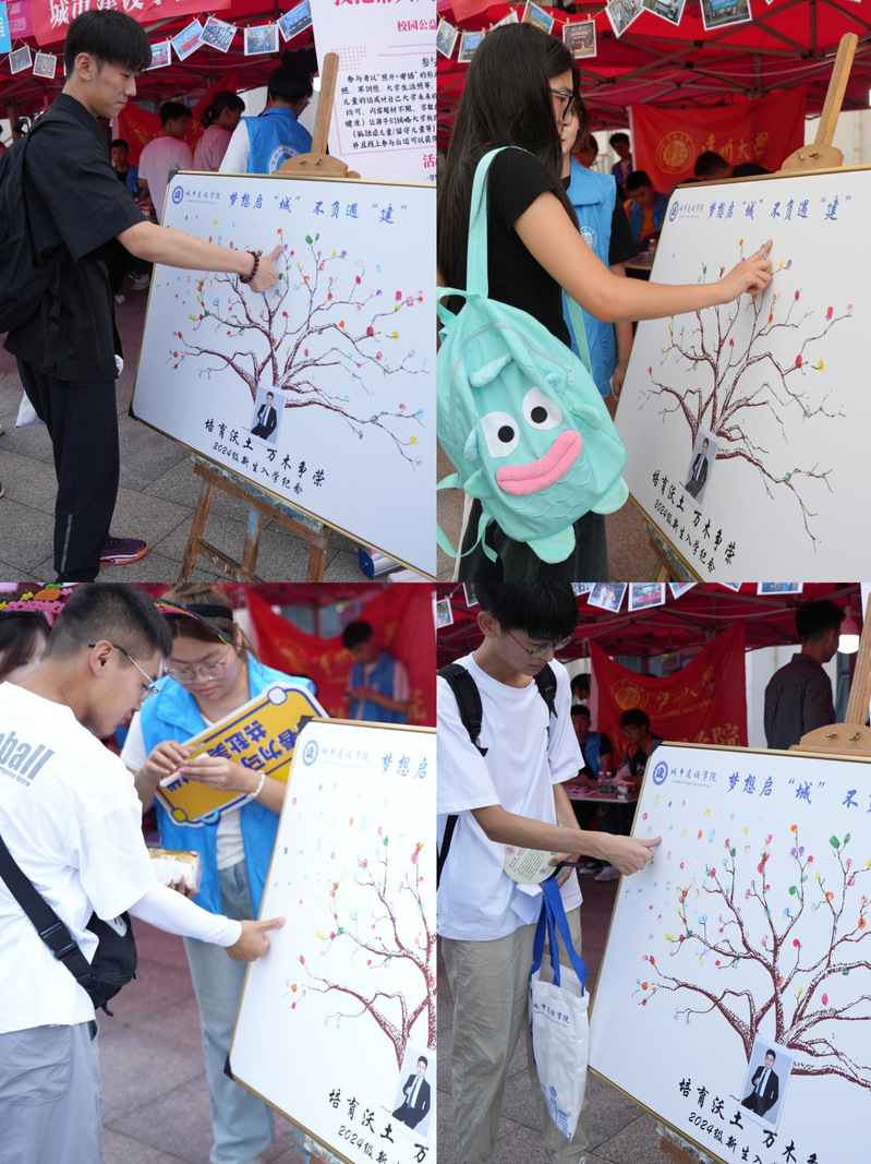设计用心。城市建设,建立于土与木的画卷之上。根据这一灵感,足球90比分 特地设计了由沃土和树木枝干为主体的立牌,新生们的指纹将化作多彩的树叶“生长”在树木之上。与此同时,在足球90比分 的留影纪念墙上,新生们的名字被拼凑起来,组成了“梦想启‘城’ 不负遇‘建’”的标语。在按压指纹和拍照留念的过程中,同学们的幸福感和归属感被激发了出来,深深感受到城建大家庭的团结和温暖。