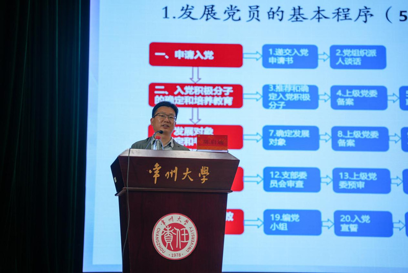 讲座伊始,陈启迪就“正确认识了解中国共产党”这一主题展开,重点介绍了中国共产党的性质、纪律、最高理想、根本宗旨和初心使命。接着,指出“端正入党动机是争取入党的首要问题”,分析了什么是正确的入党动机和如何端正入党动机,强调要全心全意为人民服务。此外,希望同学们要加强对党的理论学习,树立共产主义远大理想。最后,陈启迪向同学们系统讲解了一整套入党程序,并对入党要求、入党申请书撰写和思想汇报的书写规范做了明确要求。