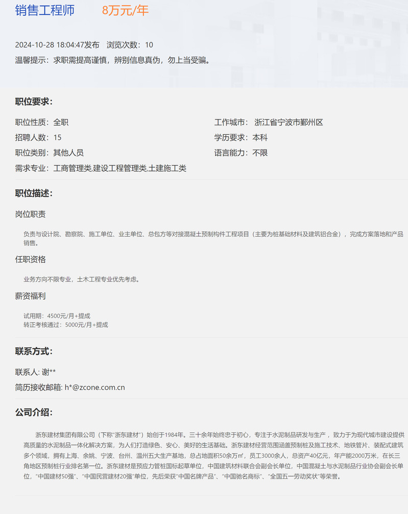 招聘[2024186]宁波浙东建材集团有限公司招聘