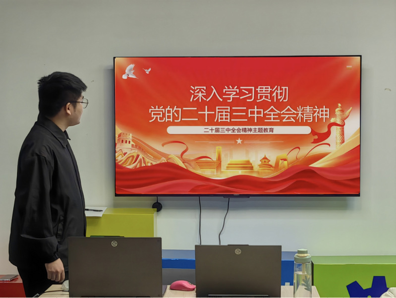 活动中,邹嘉鑫通过微视频、讲解PPT的形式带领大家一起回顾了二十届三中全会的召开背景、主要内容和重要意义,引导学员们认真学习领会全会精神,增强对党的政策以及战略目标连续性的认识。带领学员一同领读《决定》中关于教育、科研、就业的改革举措,引导学员感悟《决定》中的举措与青年学生紧密相连,明确新时代青年肩负的历史使命。