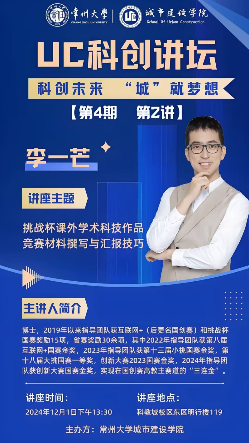 【UC科创讲坛】第4期第2讲:挑战杯课外学术科技作品竞赛材料撰写与汇报技巧