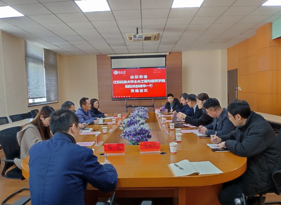 12月2日上午,江苏科技大学土木工程与建筑足球90比分 副院长邵建华、工程管理系主任及专业负责人张友志、工程管理教学团队负责人杨艳平、工程管理系教师李红艳一行来足球90比分 交流。足球90比分 党委书记刘茂灿,副院长许霞,院长助理及工程管理专业负责人李小双,工程管理系主任杨福剑,实验中心主任伍君勇以及工程管理系教师代表参加交流会。会议由许霞主持。