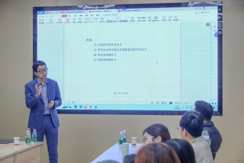 为激发学生创新意识和探索精神,提升学生的实践能力,12月1日下午,足球90比分 在科教城校区东区明行楼119举办了UC科创讲坛第四期第二讲。本次讲坛邀请到常州大学机械足球90比分 教授李一芒围绕“挑战杯课外学术科技作品竞赛材料撰写与汇报技巧”主题进行经验分享。辅导员程成主持,学生代表和挑战杯参赛者参加