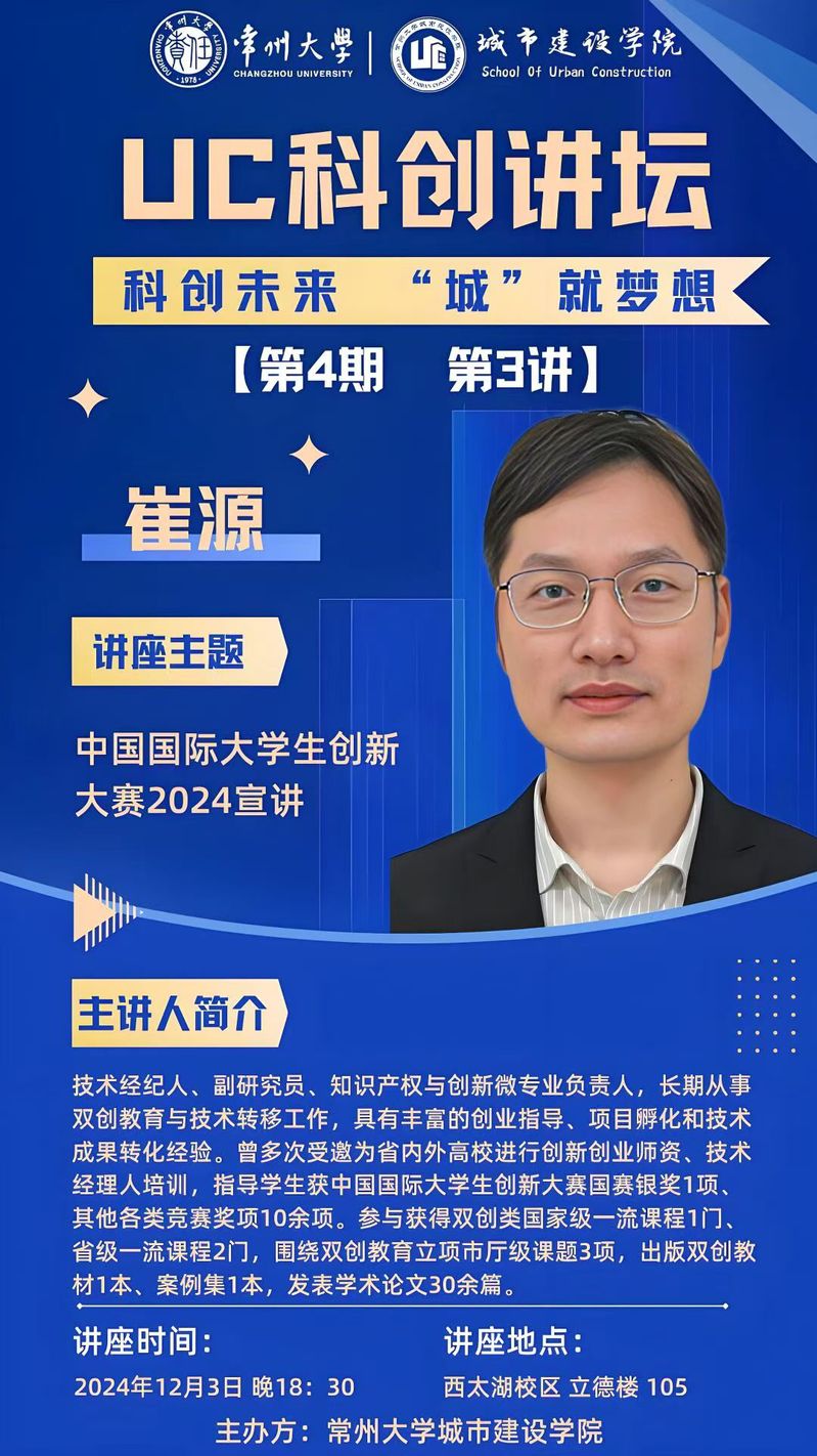 【UC科创讲坛】第4期第3讲:中国国际大学生创新大赛2024宣讲