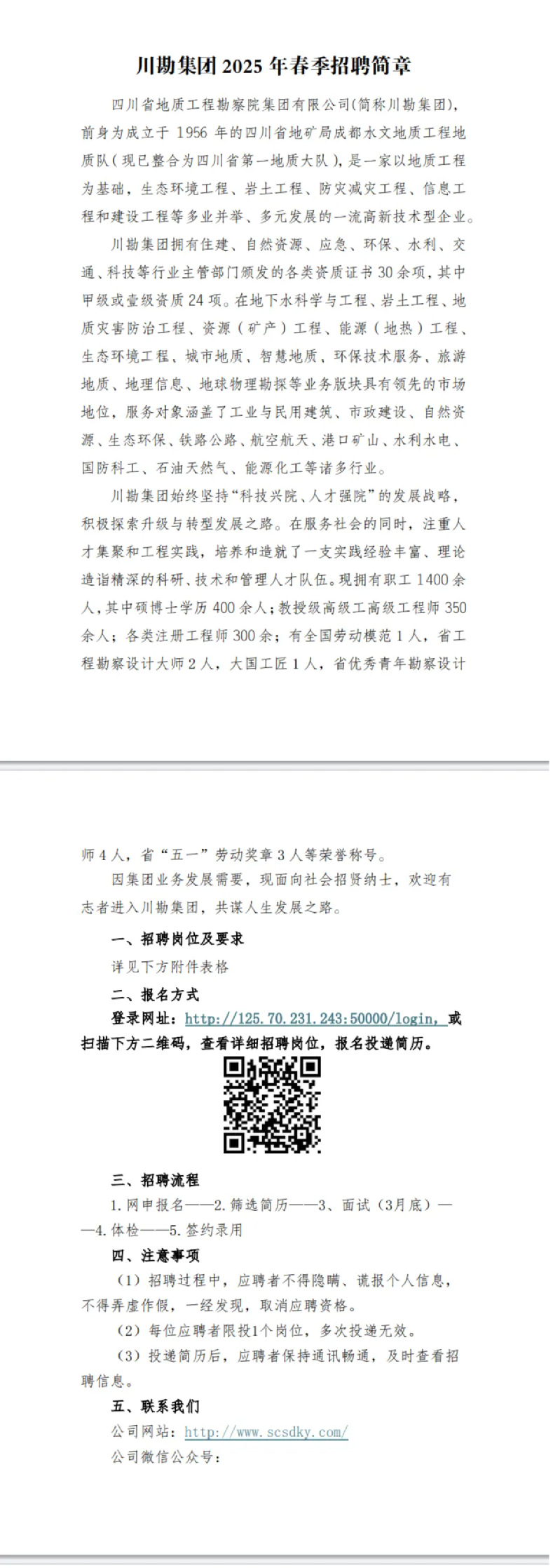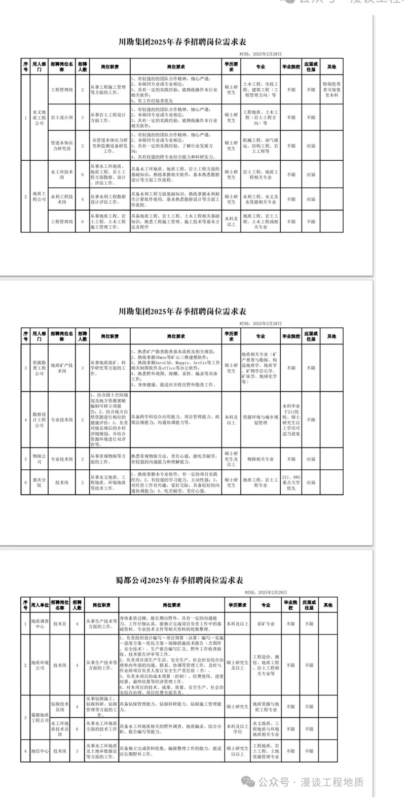 招聘[2024203]四川省地质工程勘察院集团有限公司2025年招聘简章