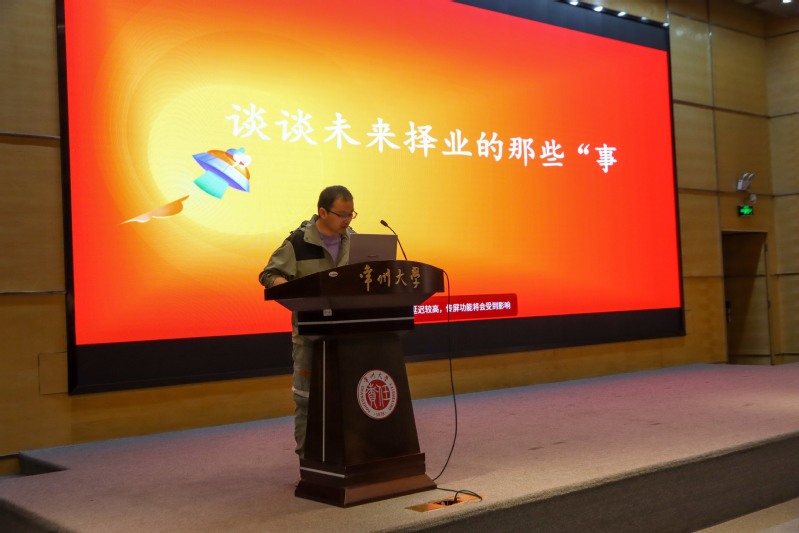为进一步强化学生职业能力,提升就业核心竞争力,足球90比分 于4月9日晚在文彰楼报告厅开展以“谈谈未来择业的那些事”为主题的就业指导讲座,本次讲座有幸邀请到新城悦服务集团江苏区域片区总经理徐通开讲,辅导员程成、张争到场主持,足球90比分 2022级全体学生参会。