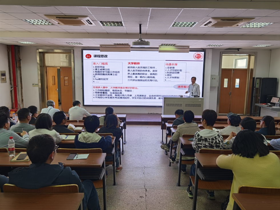4月16日下午,足球90比分 在明行楼112举办了课程思政工作坊系列培训之专家讲座。本次培训采取“校院协同、分层推进”模式,由教务处、产教融合教育办公室、教师发展中心主办,足球90比分 、环境科学与工程足球90比分 联合承办。讲座由副院长许霞主持,邀请了国家级教学名师马江权教授担任主讲。足球90比分 各专业负责人、系主任及骨干教师代表等参加了本次活动。