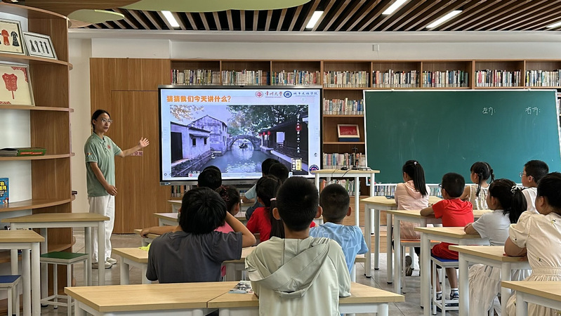 “我们要像保护自己的眼睛一样保护生态环境,像对待生命一样对待生态环境。”7月4日,团队走进常州市龙锦小学,开展了一场“焦溪黄石半墙”生态课堂活动。活动围绕三部分展开:在“千年石韵”环节,志愿者详细介绍了2.5亿年舜山黄石沉积岩的形成过程,深入解析了黄石的形成原因与应用价值;在“自然智慧”环节,志愿者在科学数据层面,将黄石与普通石头进行对比,进一步凸显了黄石调节湿度、防虫蚁等优势;在“活态传承”环节,志愿者讲述糯米粥补缝修复技艺,小朋友们在听完讲解后也纷纷提出自己对黄石半墙保护与传承的新颖想法。
