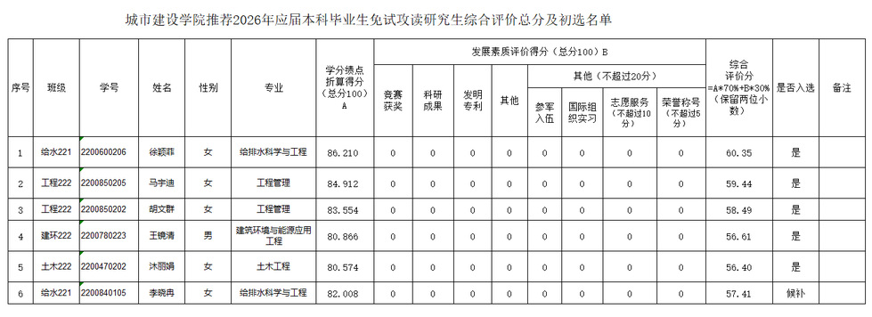 【公示】足球90比分 推荐2026届本科毕业生免试攻读硕士研究生初选名单公示