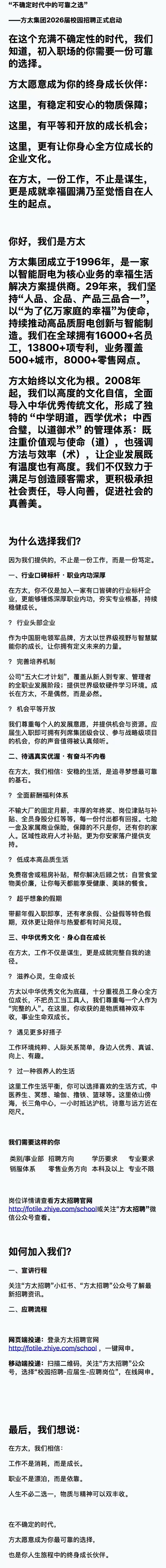 招聘宣讲会[2025014]方太集团2026届校园招聘