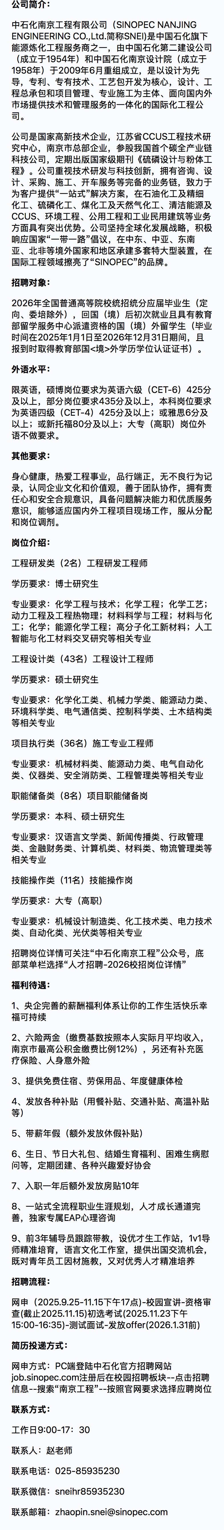 招聘宣讲会[2025046]中石化南京工程有限公司2026年校园招聘宣讲会