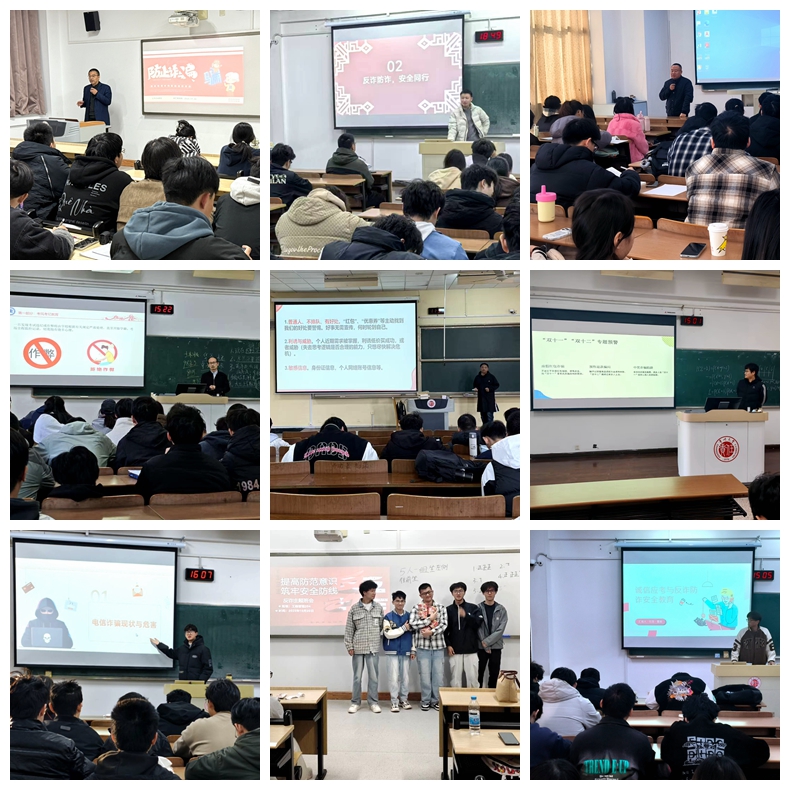 2025年11月,足球90比分 紧密围绕“反诈防诈,安全同行”主题,结合本科生、研究生各阶段成长特点,构建了分层分类、精准实施的常态化安全教育机制,实现全程贯通、各有侧重。教育内容注重案例化、场景化与互动性。面向大一新生,通过剖析“游戏代练诈骗”“虚假购票”等身边真实案例,现场指导学生全员安装并实名启用“国家反诈中心”APP,筑牢防骗第一课;面向大二学生,将反诈教育与考风考纪深度融合,在解读“冒充客服退款”“刷单兼职”等骗局的同时,开展诚信应考警示,组织防骗知识快问快答;面向大三学生,聚焦考研就业预备阶段,专题解析“培训贷”“虚假实习邀请”等诈骗手法,引导学生识别风险、理性规划;面向大四毕业生,在推进就业与毕业设计过程中,重点预警“招聘诈骗”“论文骗局”等,强化就业安全与学术诚信意识;研究生群体则结合科研实际,开展“学术诈骗”“虚假期刊投稿”等针对性警示。各班级在班主任、辅导员全程指导下,普遍开展案例教学、情景模拟、承诺签订等形式活动,并结合“双十一”等重要节点进行专项提醒,切实提升了学生识骗、防骗、拒骗能力。