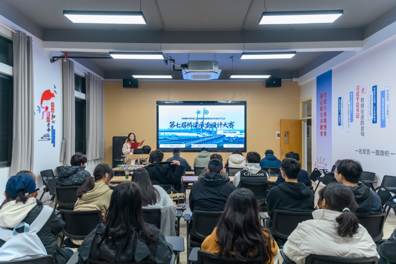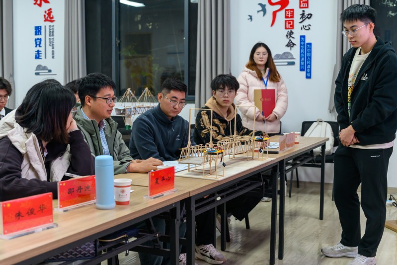 初赛中,选手们以方木条、棉线等材料完成桥梁模型,经评委团多方面综合评价后,优胜队伍进入决赛。决赛现场,晋级选手进一步优化作品,呈现出兼顾结构科学、承重实用与美学创意的桥梁模型。点评环节,评委从承载性能、设计创新等维度综合评分,精巧模型依次接受重量考验,现场气氛紧张热烈。