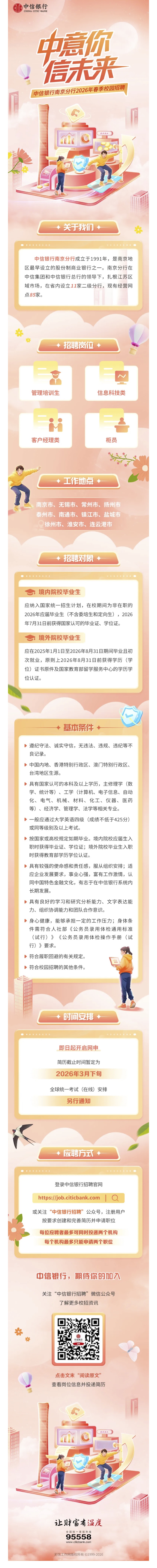 招聘速递[2026004]中信银行南京分行2026年春季校园招聘