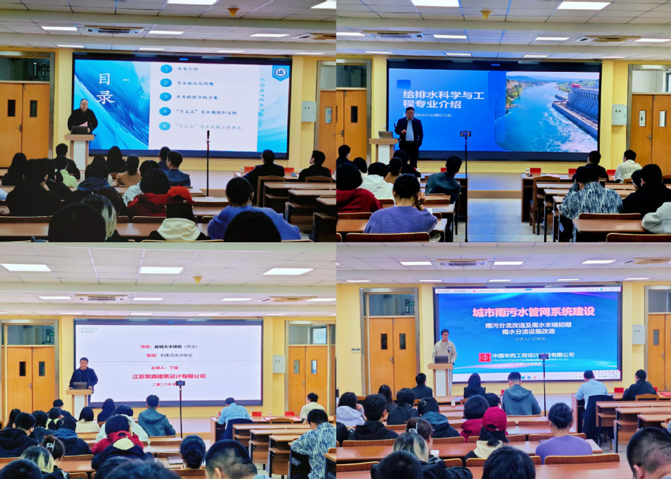 周韧以《给排水科学与工程专业介绍——开启给排水行业精彩之旅》为题,结合水危机问题,明确给排水专业守护水资源、保障水安全的使命,梳理行业发展脉络,强调技术进步的核心推动作用,指出智慧水务等发展热点,并为学生的就业选择提供了个人建议。